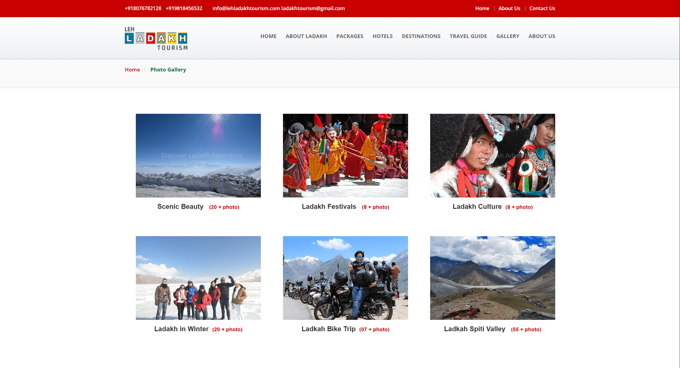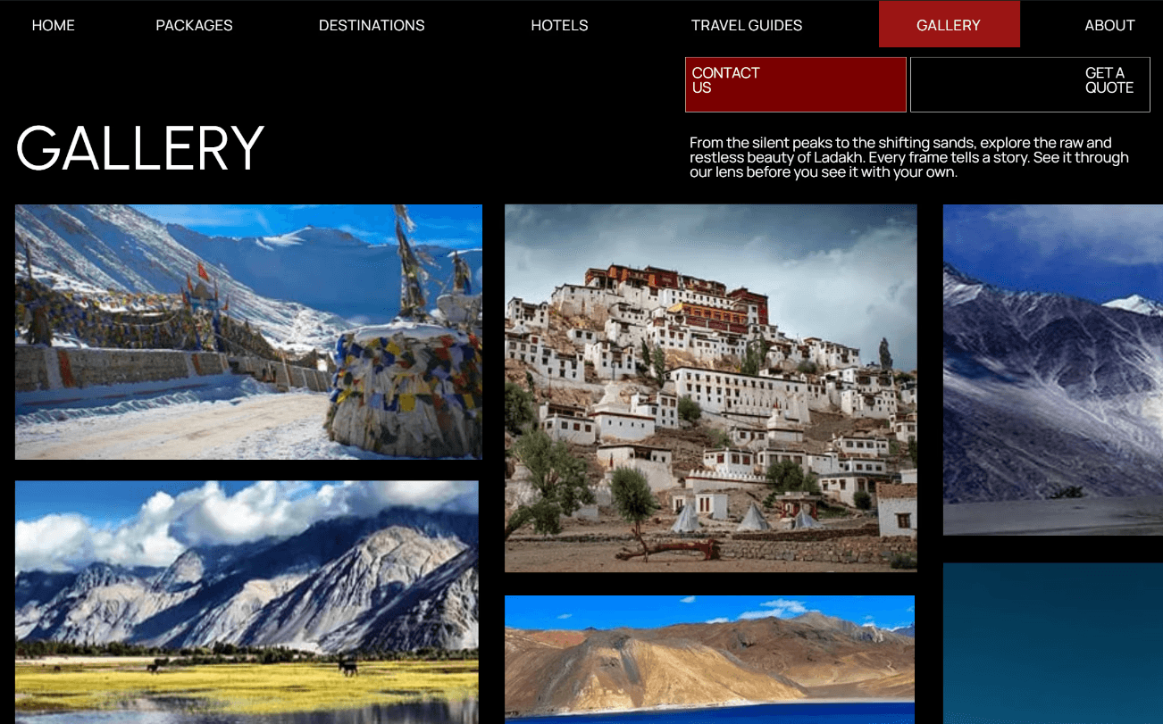 The original gallery organised images into small categorised thumbnails, which felt more like a filing system than a visual experience. For a destination as photogenic as Ladakh, this was a significant opportunity left on the table.