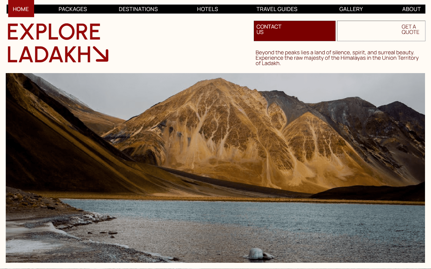 Explore Ladakh is a travel and tourism website for a Ladakh-based agency specialising in curated tours, treks, and experiences across the region — redesigned to better reflect the raw beauty and spirit of the destination.